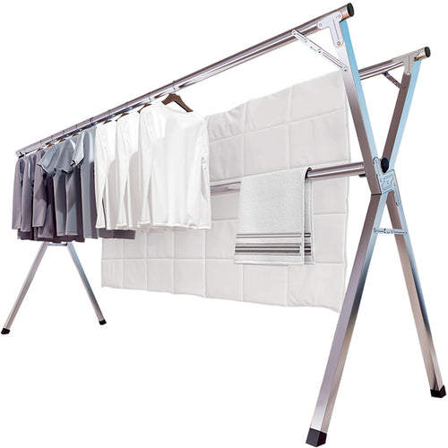 JAUREE 63 Inches Clothes Drying Rack, Drying Rack Clothing Folding Indoor Outdoor, Heavy Duty Stainless Steel Laundry Rack, Foldable Portable Large Clothes Rack Garment Rack with 20 Windproof Hooks